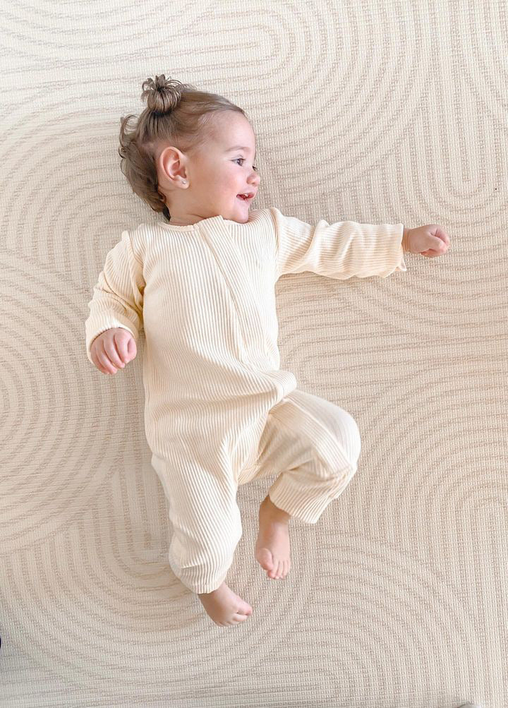 Our Chloé Ribbed Romper is crafted from buttery-soft ribbed cotton that’s breathable, durable and gentle on delicate skin. Featuring a minimalist silhouette, signature logo detail, and easy snap closures for quick changes.