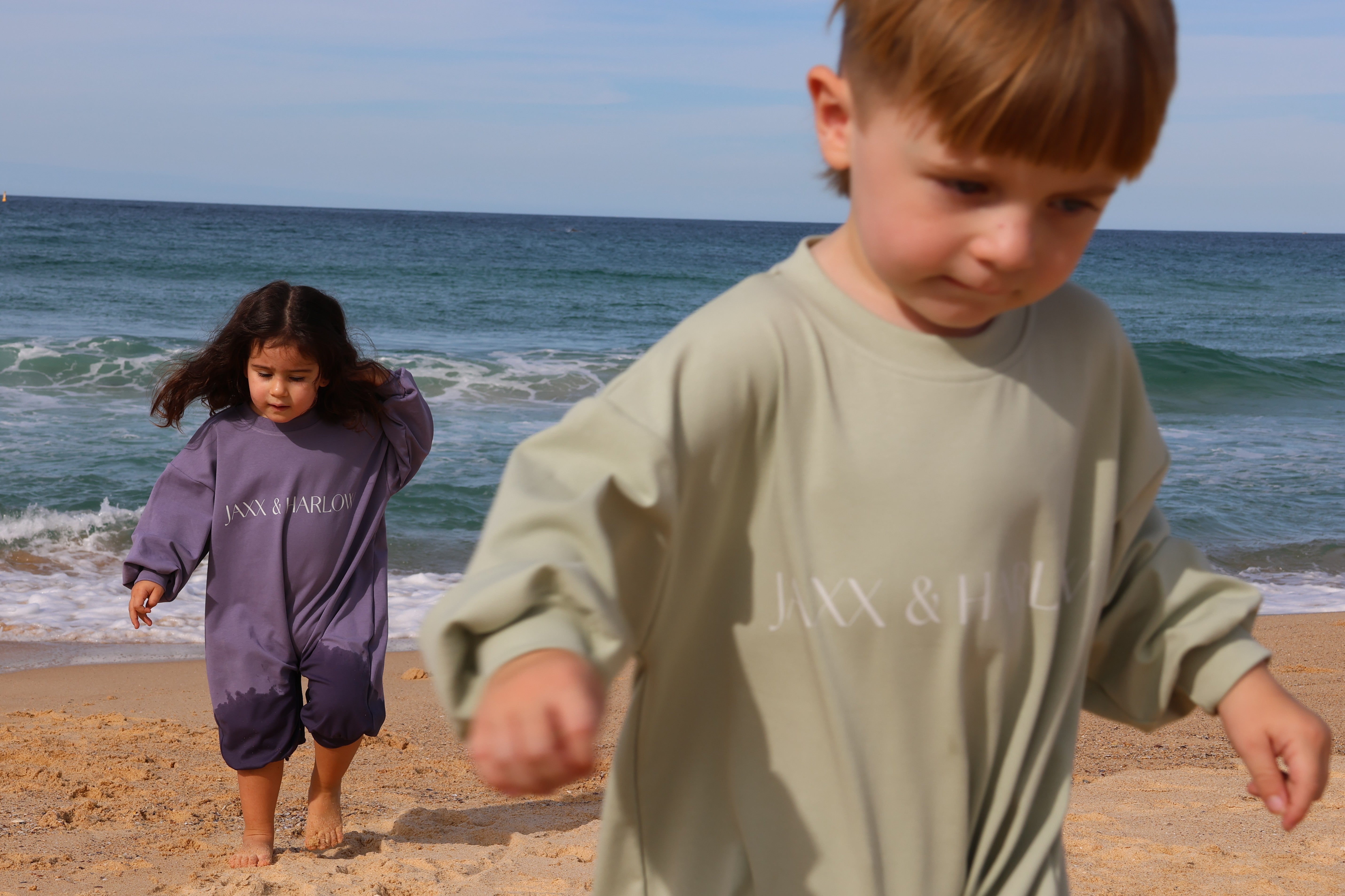 Soft, snuggly, and stylish — the Essential Logo Romper in Sage & Lilac is a must-have for your little one’s wardrobe. Crafted from a beautifully soft cotton blend with a lovely stretch fabric, this all-in-one is perfect for those cooler days when comfort is key.